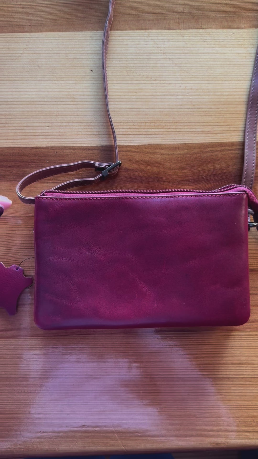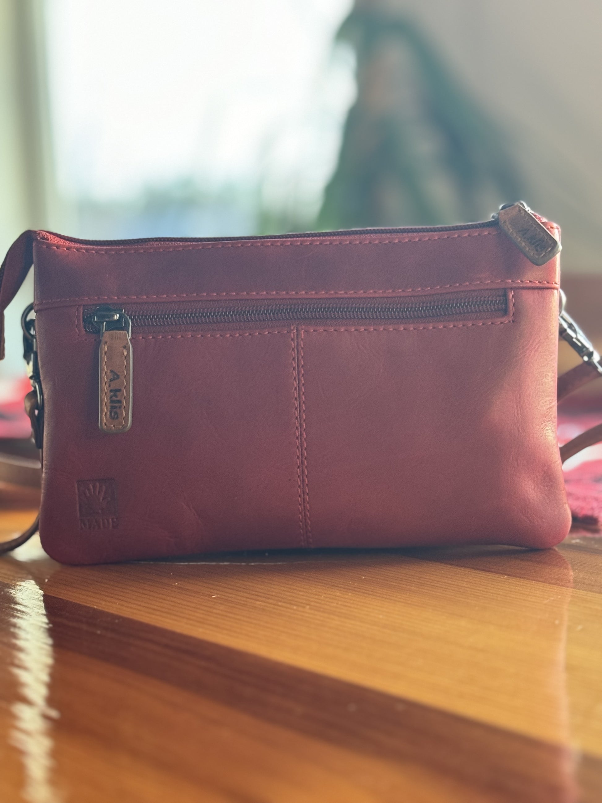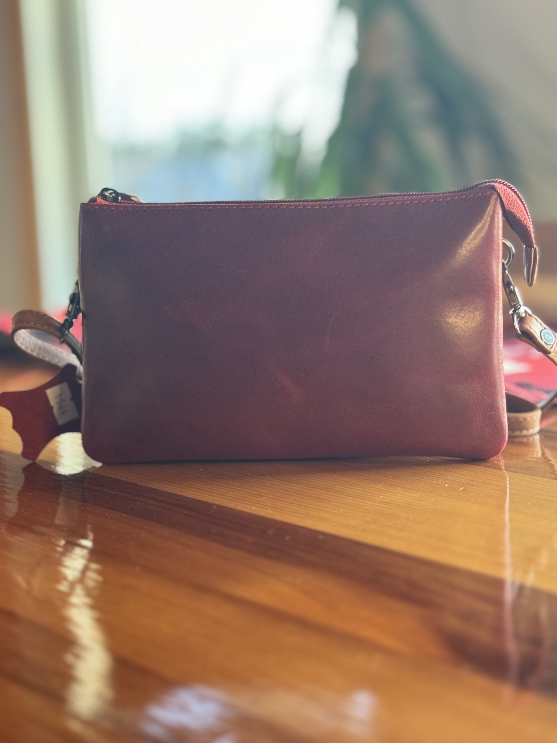 Crafted in Alberta, the Adrian Klis purse is a statement of elegance with its 100% genuine leather washed in a deep red hue. Its sleek design encompasses three zippered compartments, offering both style and organization. The thoughtful inclusion of card storage ensures practicality without compromising sophistication. Additionally, the extra handle provides a seamless transition from crossbody to clutch, making it a versatile accessory for various occasions. This Alberta-made purse stands out as a combination of exquisite craftsmanship and functional design, perfect for those who appreciate both fashion and practicality.
