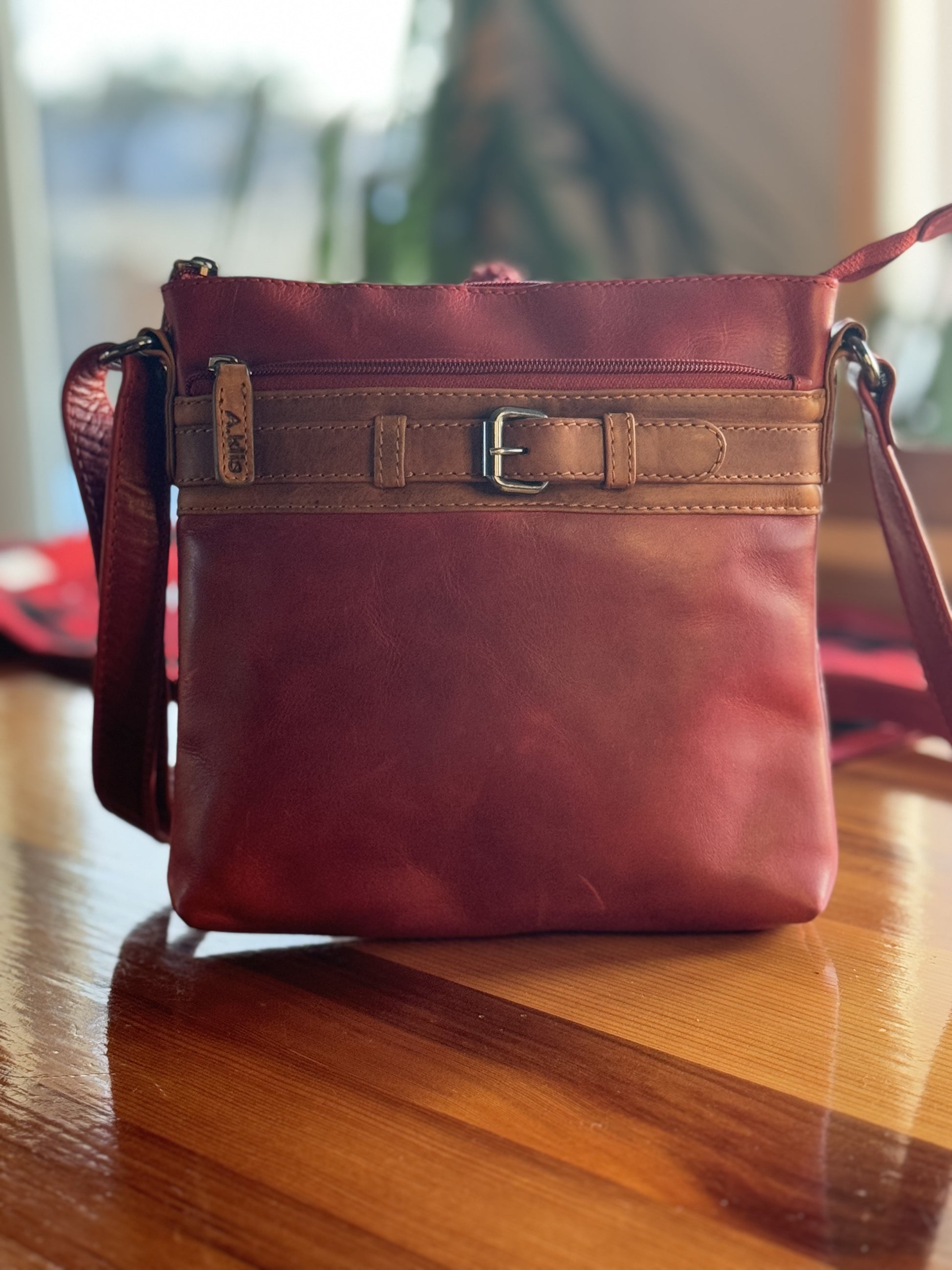 Indulge in the timeless allure of the Adrian Klis purse, meticulously handcrafted in Alberta with 100% genuine leather washed in a deep red hue. Its sleek design is accentuated by a stylish front buckle detail, adding a touch of sophistication. The front zippered pocket offers both fashion and convenience, while the functional interior ensures organized storage for your essentials. The thoughtful addition of a discreet back zippered pocket enhances practicality. Elevate your style with this Alberta-made purse, a perfect fusion of exquisite craftsmanship and functional elegance.