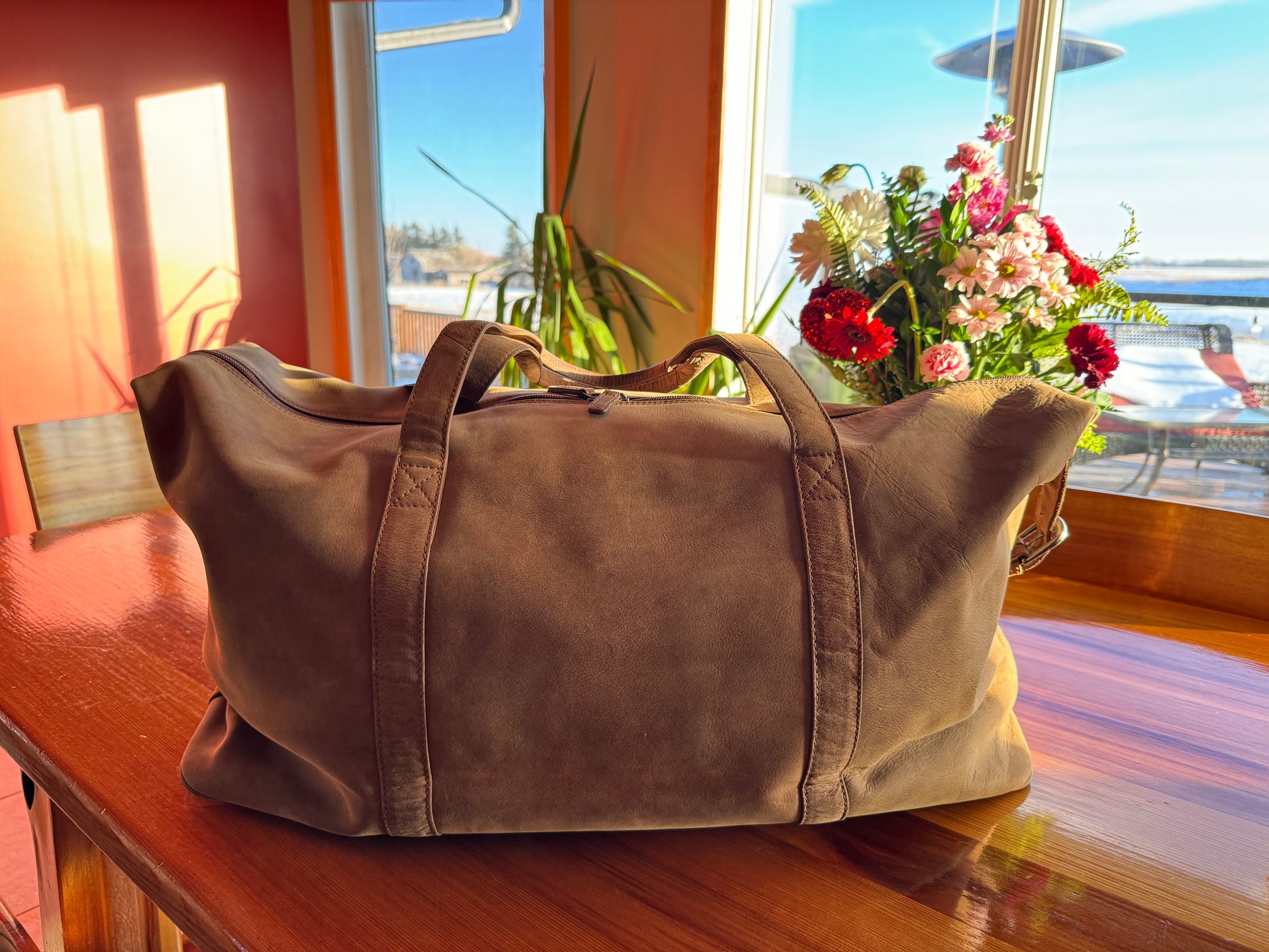Explore the epitome of style and functionality with the Adrian Klis Bison Leather Duffle Bag. Crafted from premium bison leather, this spacious travel companion boasts a generous 12-inch height, 25-inch length, and 13-inch width. Organize your essentials effortlessly with two inner pockets, ensuring both elegance and practicality on your journeys. Elevate your travel experience with the timeless allure and ample storage of this exquisite duffle bag.