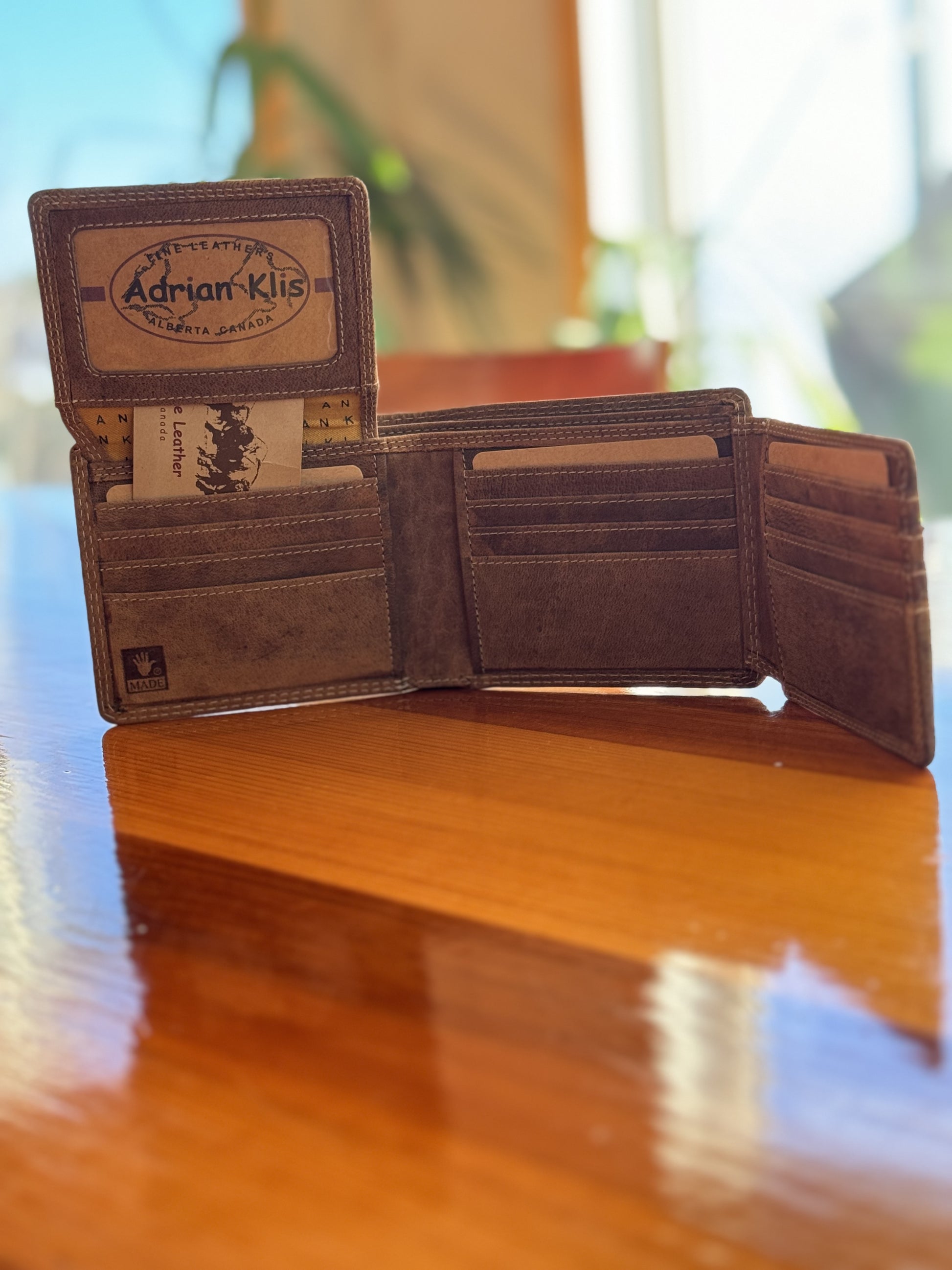 Introducing the Adrian Klis Trifold Wallet – a masterful blend of practicality and sophistication. Crafted with precision from high-quality materials, this wallet features not one, but two cash pockets, providing ample space for your currency. Elevating its functionality, the dual fold-up ID storage ensures easy access to your identification cards. Experience the perfect union of innovative design and refined craftsmanship with Adrian Klis, where every detail is thoughtfully curated for a trifold wallet that seamlessly combines style with utility.