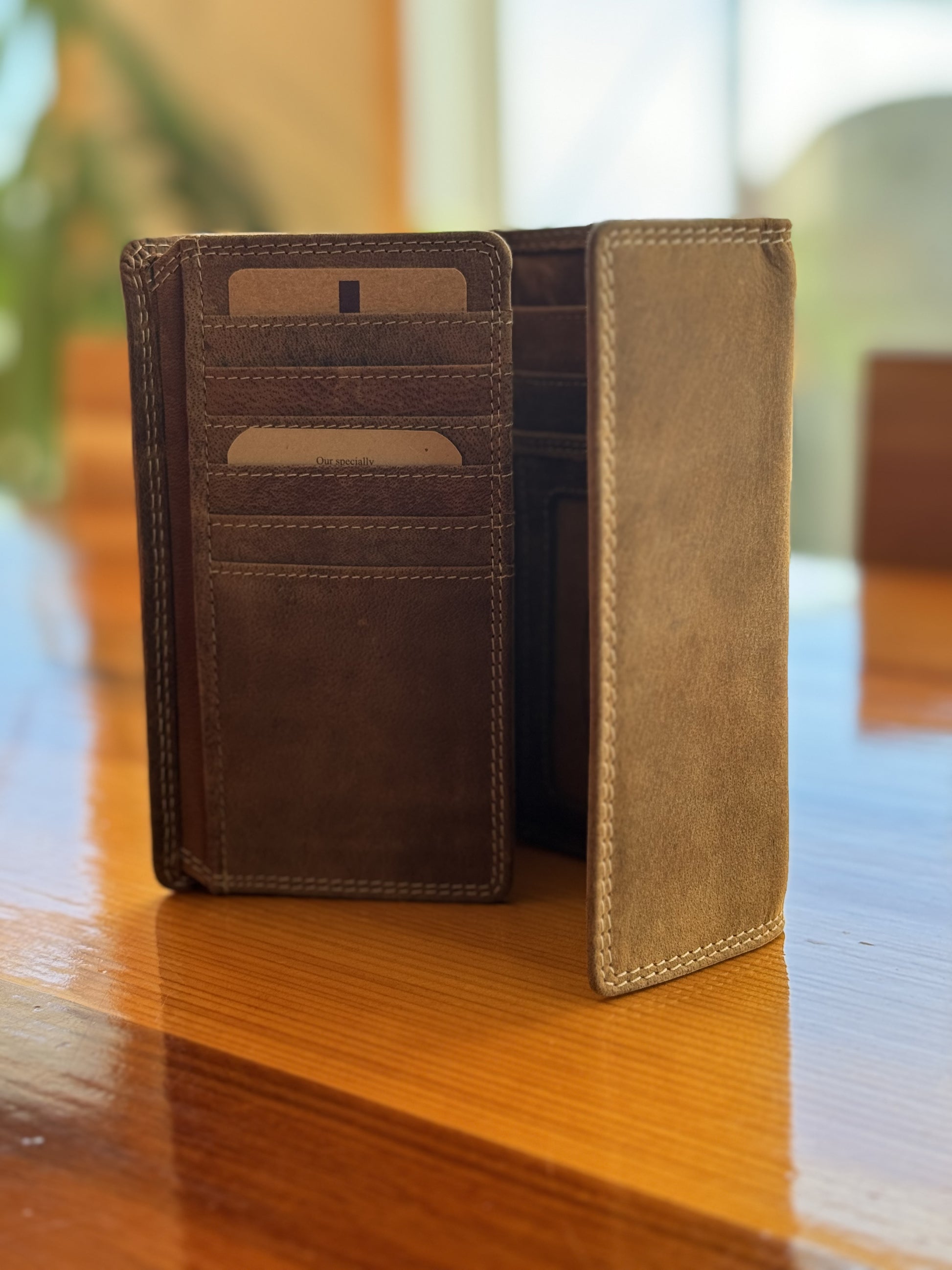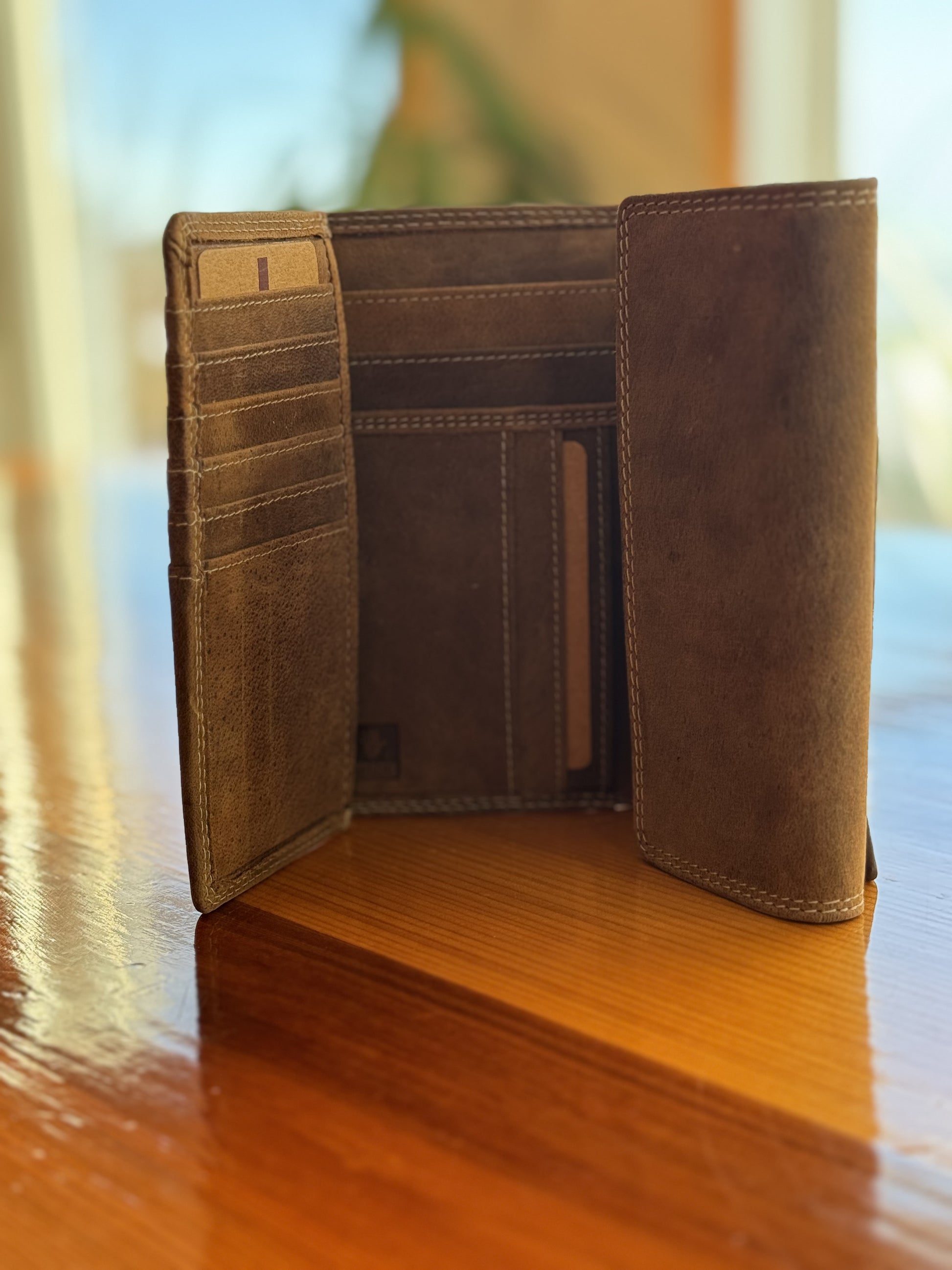 Introducing the Adrian Klis Wallet, a testament to exquisite design and genuine bison leather artistry. Secured with a front button enclosure, this wallet unveils a thoughtfully crafted interior featuring a fold-out for card storage, three spacious cash pockets, and a discreet back zippered pocket for additional essentials. Elevate your everyday carry with the perfect combination of style and functionality. Experience the richness of genuine bison leather in every detail with the Adrian Klis Wallet – where meticulous craftsmanship meets practical elegance.