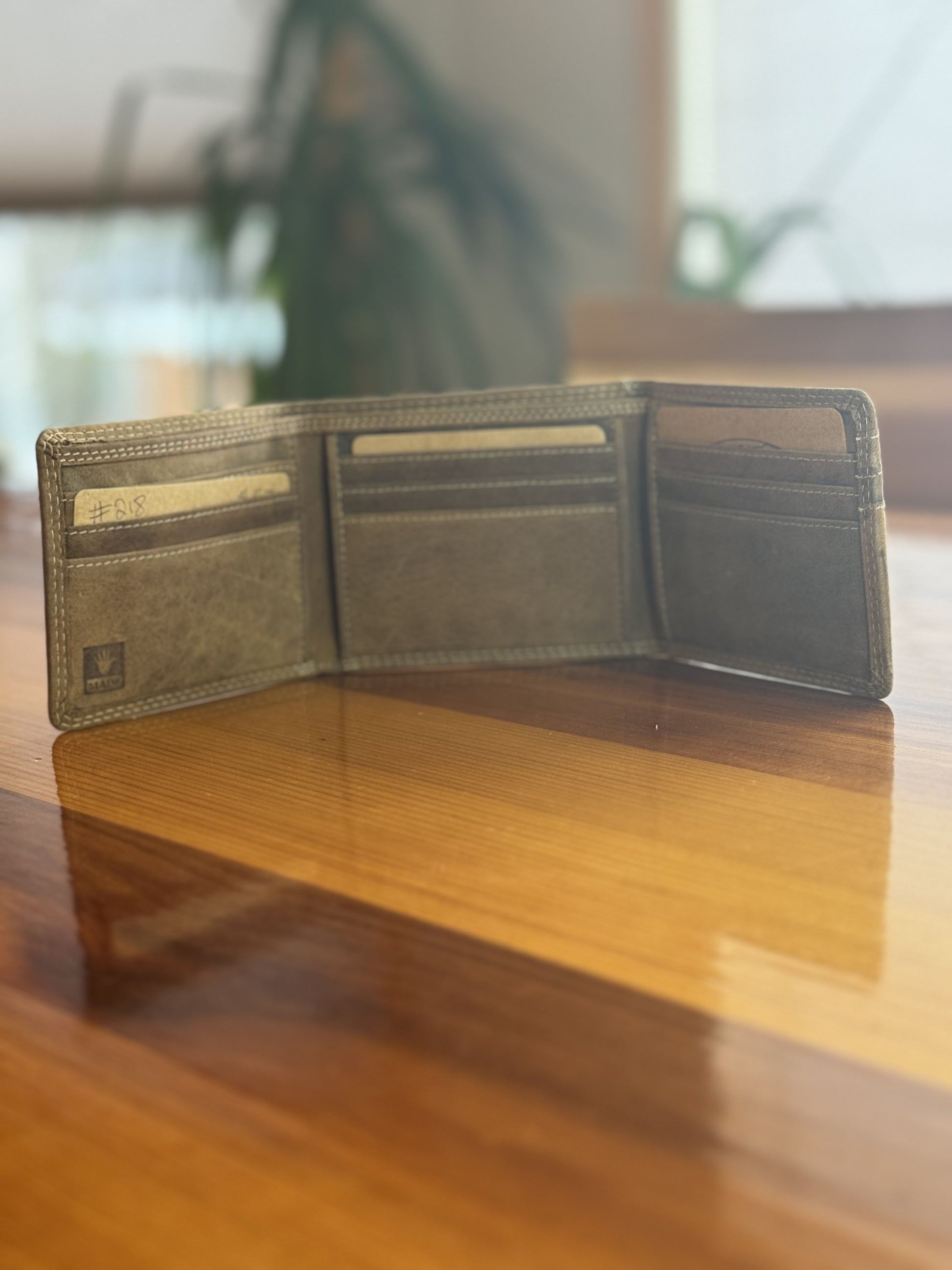 Adrian Klis presents a distinguished wallet crafted from luxurious buffalo hide, embodying rugged elegance. This meticulously designed accessory boasts 12 thoughtfully arranged card slots, providing ample room for your essentials. Accompanied by a single cash slot, this wallet seamlessly combines functionality with a touch of minimalist sophistication. While it lacks a dedicated space for your ID, its sleek design ensures a streamlined and stylish companion for your daily essentials.