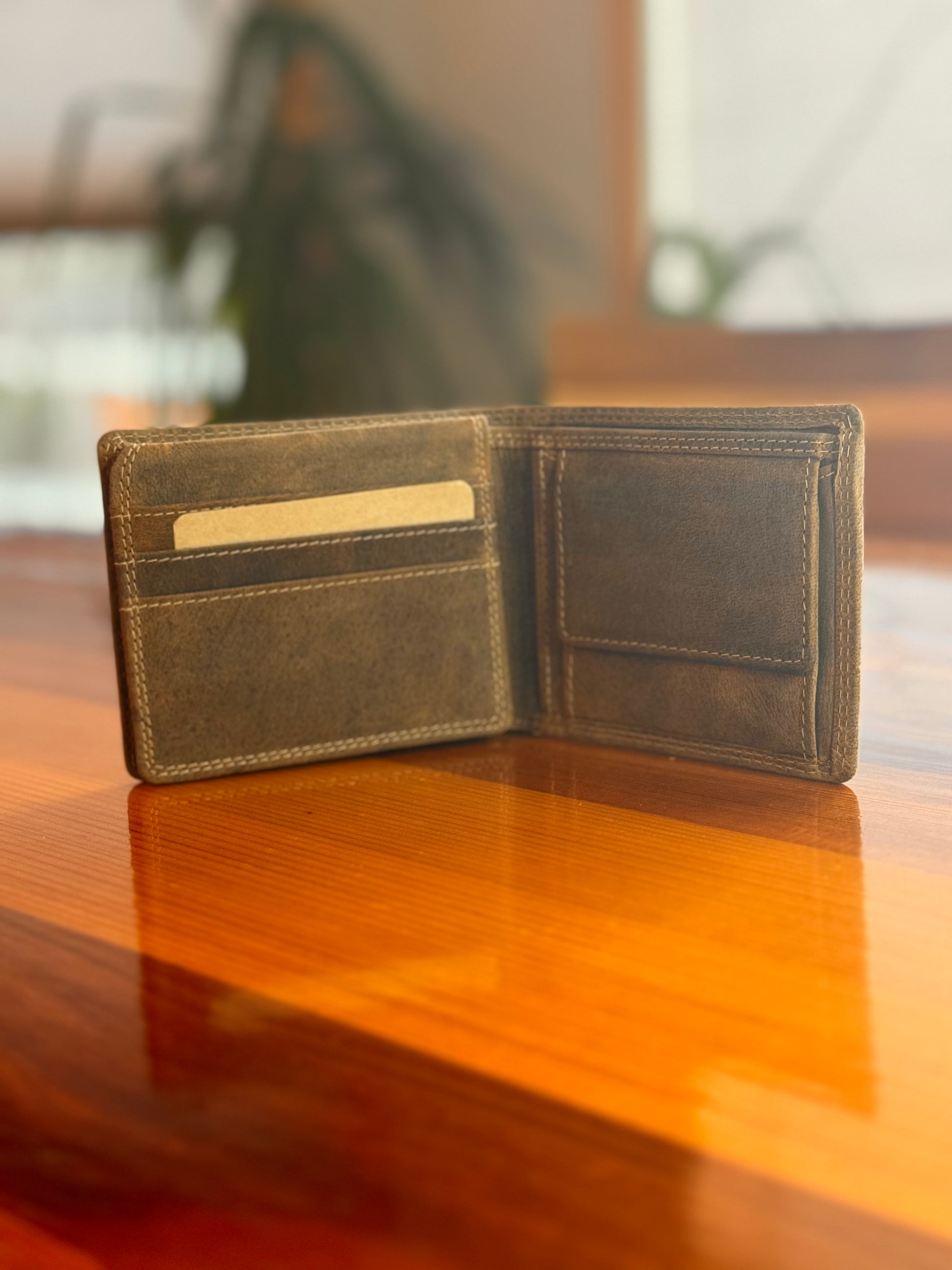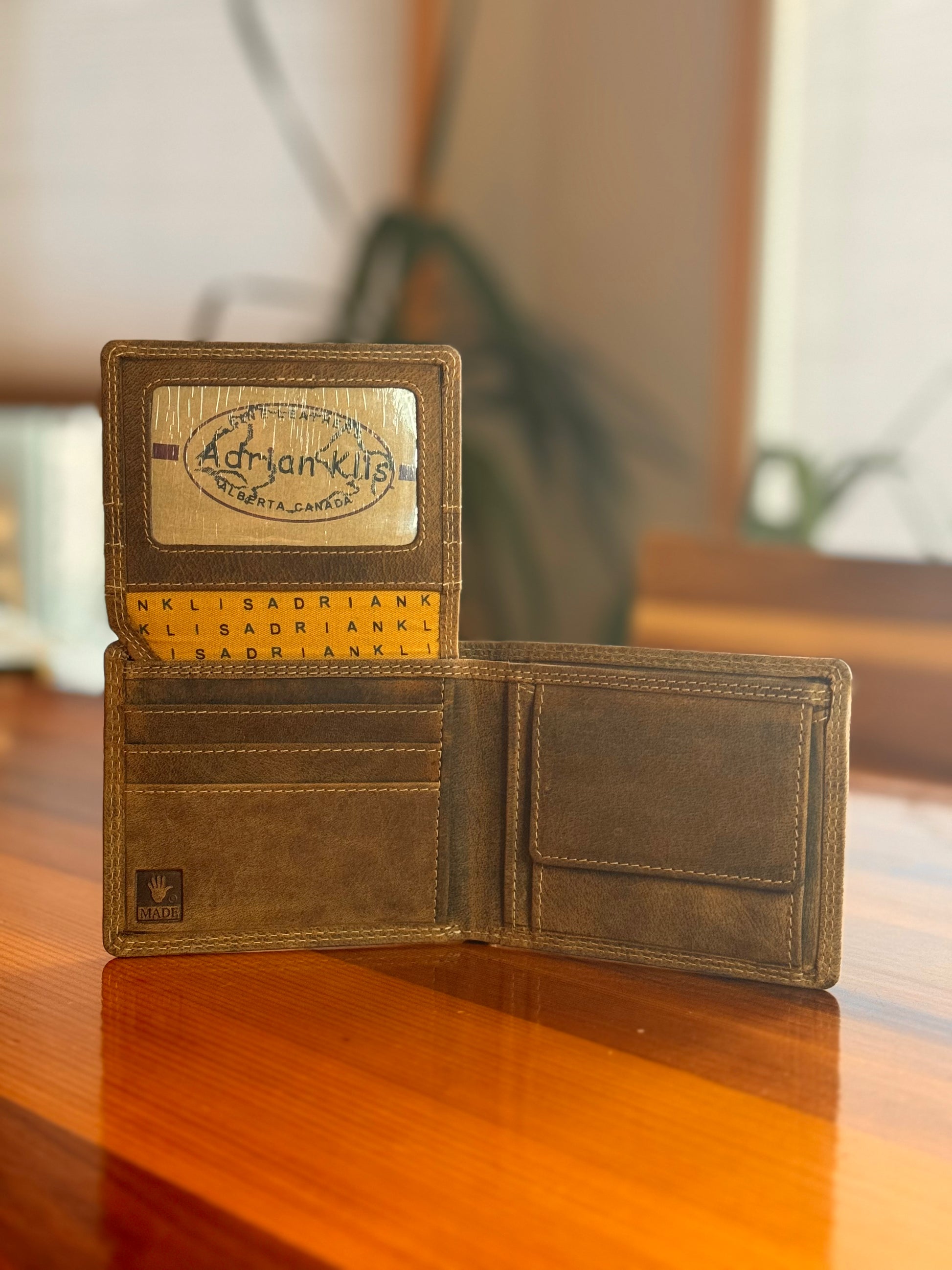 Indulge in the exquisite craftsmanship of Adrian Klis with this buffalo leather wallet. Imbued with a rich texture, this wallet features a thoughtfully designed interior flap, offering dedicated space for both ID and cards. With six carefully arranged card slots and two convenient cash slots, it effortlessly combines practicality with a touch of luxury. The addition of a button-enclosed change pocket adds a functional element, ensuring your essentials stay organized in style. Elevate your everyday carry with this fine blend of form and function.
