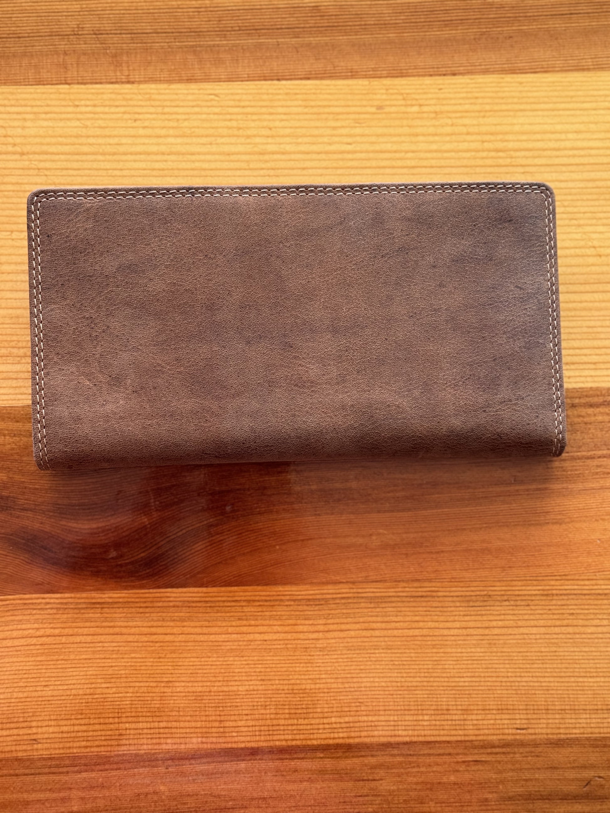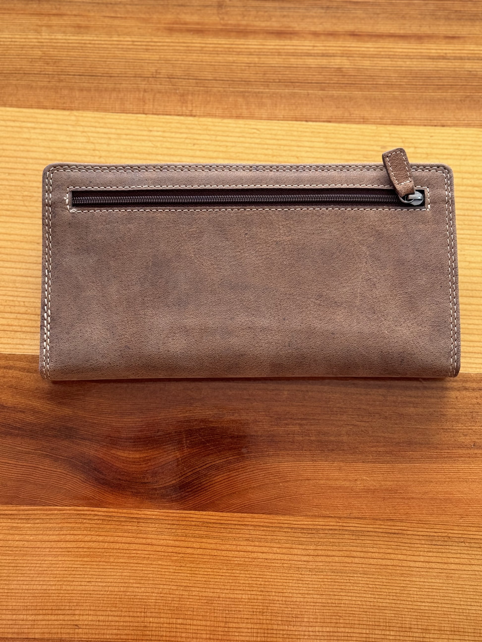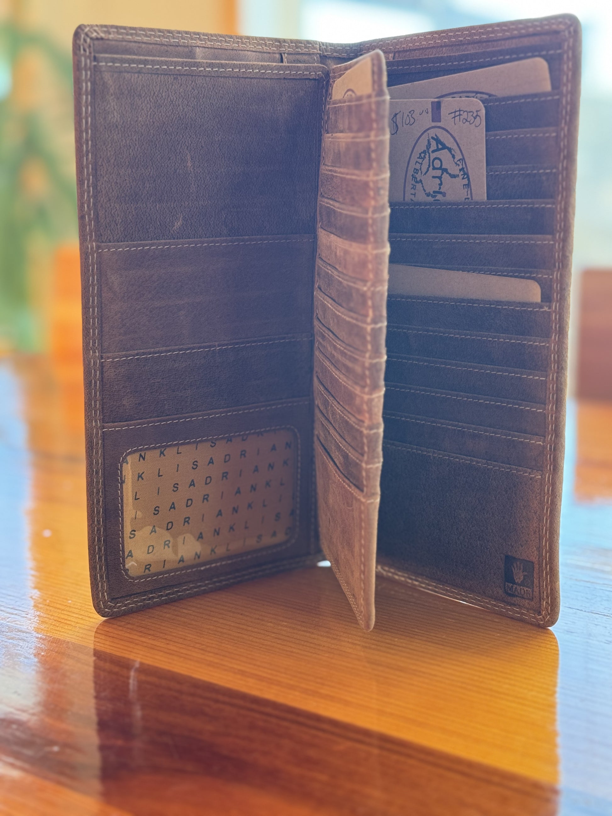 Explore the pinnacle of refinement in the Adrian Klis wallet, expertly fashioned from authentic bison leather. This distinguished accessory not only radiates a sense of luxury but also offers ample card and cash storage to accommodate your daily needs. With a thoughtfully designed back zipper enclosure, security meets style seamlessly, providing a discreet yet accessible pocket for added convenience. Elevate your everyday carry with the fusion of fine craftsmanship and practicality – Adrian Klis, where genuine bison leather meets functional elegance.