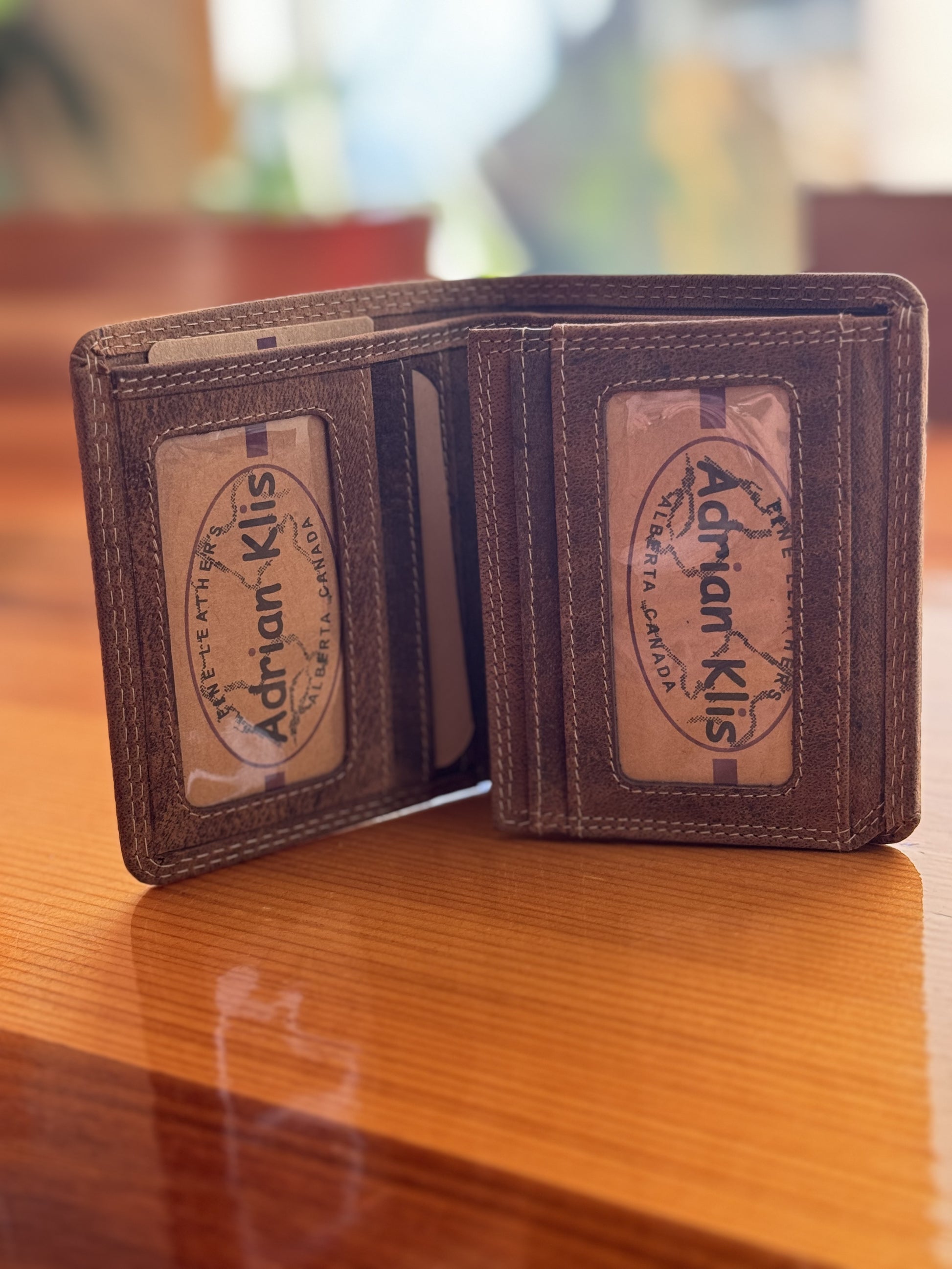 Indulge in the artistry of organization with the Adrian Klis Buffalo Leather Trifold Wallet. Crafted from resilient buffalo leather, this wallet features a meticulously designed interior with two dedicated ID spaces, seven card slots, and a spacious compartment for cash. Discover an added layer of discreet storage with the hidden card slot, seamlessly blending security and style. Elevate your everyday carry with Adrian Klis, where the enduring allure of buffalo leather meets innovative design in a trifold wallet that caters to both form and function.