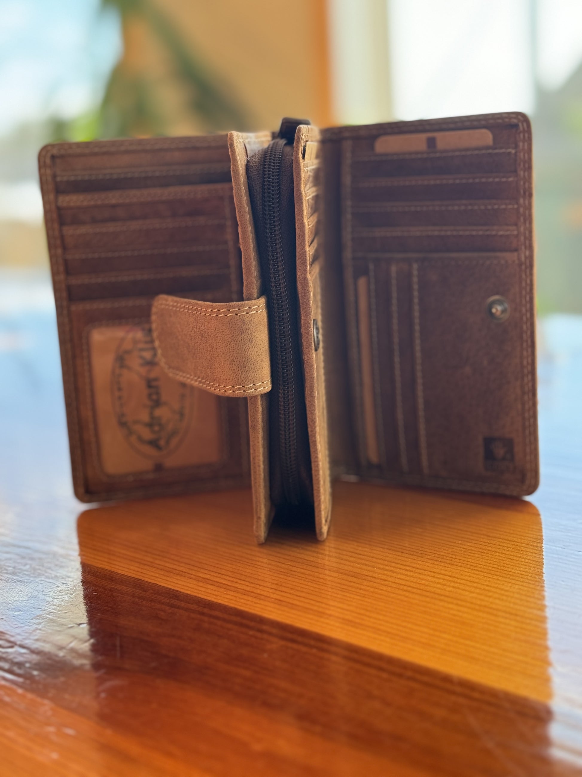 Introducing the Adrian Klis wallet, a fusion of luxury and functionality. Crafted from genuine bison leather, this wallet exudes sophistication. Its front button enclosure ensures security, while the two card storage compartments provide easy access to your essentials. The zippered pocket adds an extra layer of convenience, making it a versatile accessory for the modern individual. Elevate your style with Adrian Klis, where genuine craftsmanship meets practical design in the form of a distinguished leather wallet.