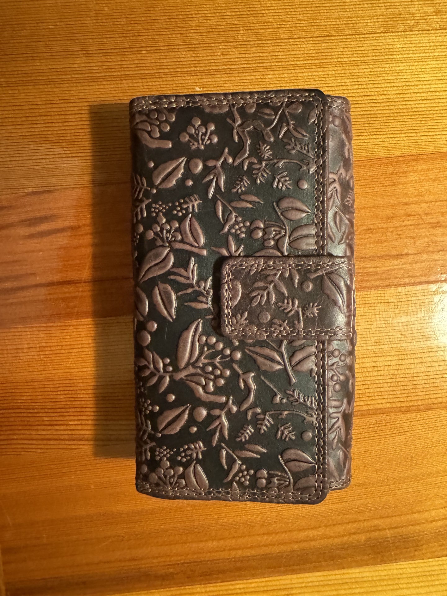 A perfect blend of style and function. Crafted from 100% genuine leather with a rich brown hue and intricate embossing, it exudes timeless elegance. Compact yet organized, it features card slots, a bill compartment, and a zippered coin pocket. Elevate your everyday carry with this stylish and practical accessory
