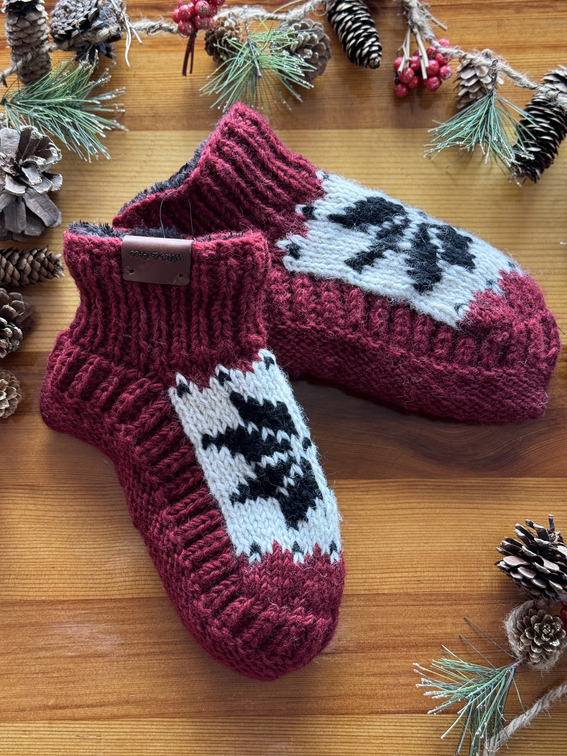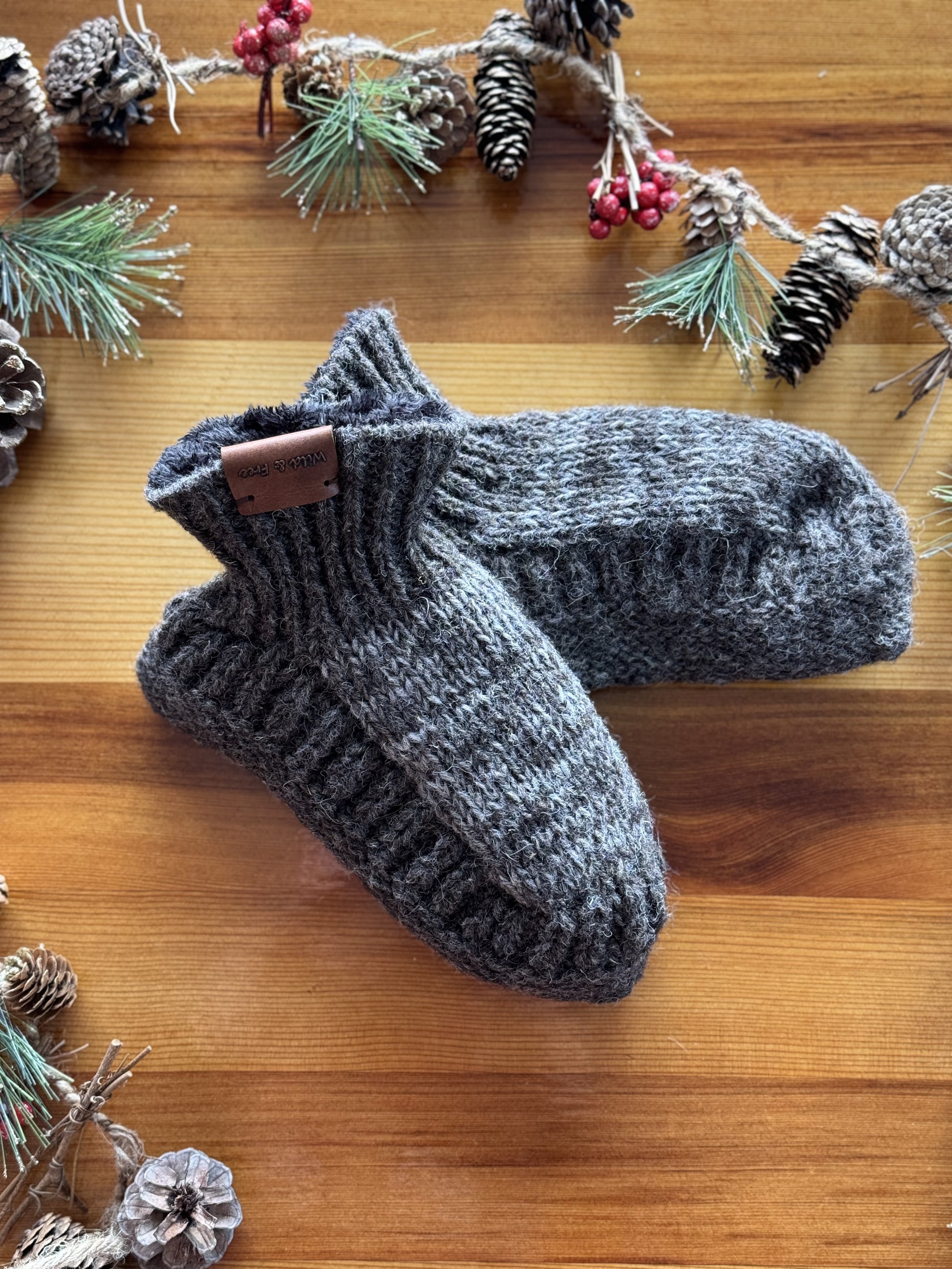 Step into warmth and style with Wild & Free's 100% New Zealand Wool Booties, available in an array of captivating colors. Choose from the classic elegance of charcoal gray and black, the earthy tones of Natural (gray and brown), or embrace the festive spirit with the red snowflake design.