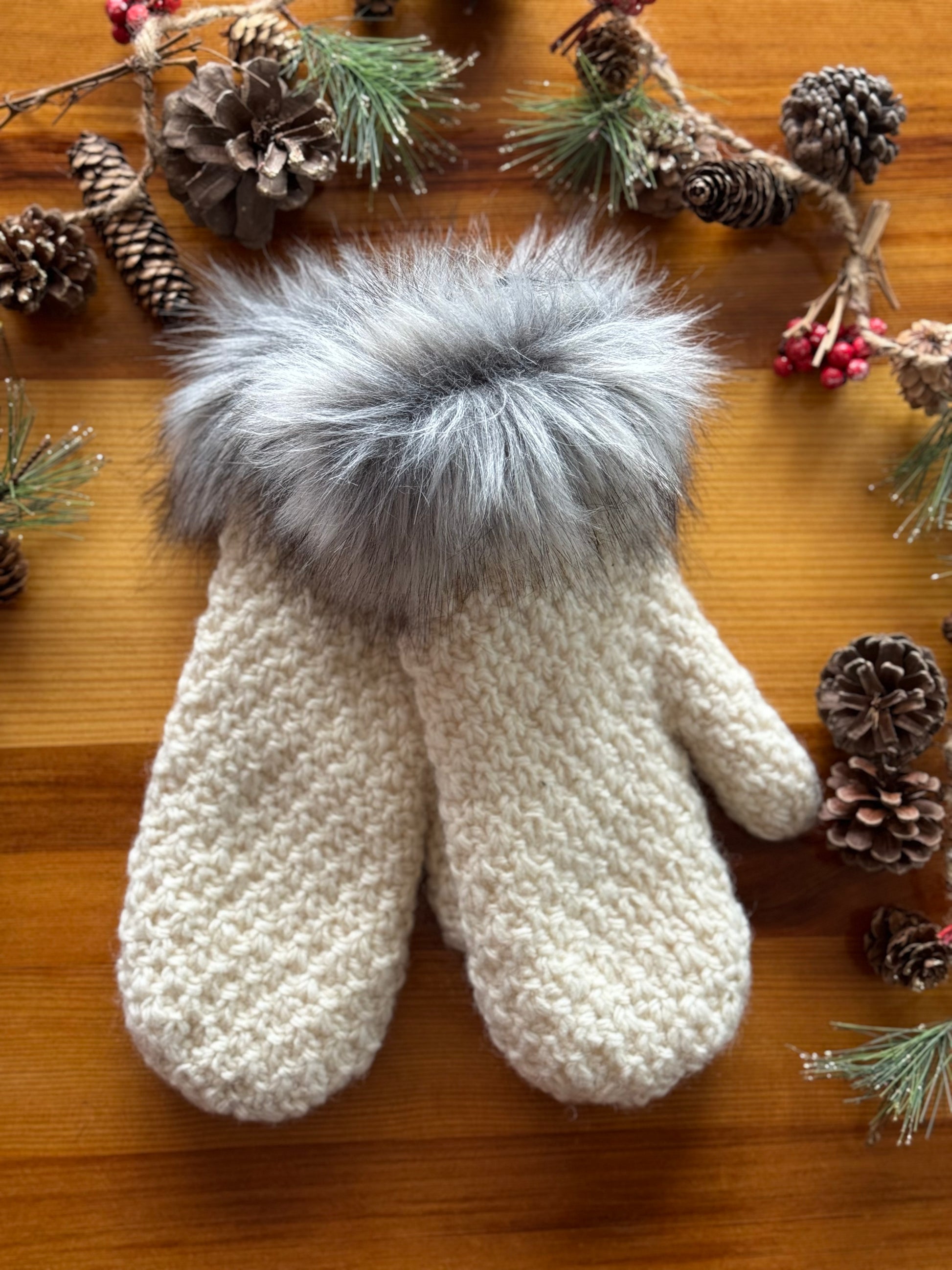 Immerse yourself in the epitome of winter luxury with Rocky Mountain Outfitters' 100% New Zealand Wool Mittens. In a pristine white hue adorned with a chic gray faux fur accent, these mittens redefine elegance in cold-weather fashion. The super-soft fleece lining adds an extra layer of comfort and insulation, making them your go-to choice for both style and warmth