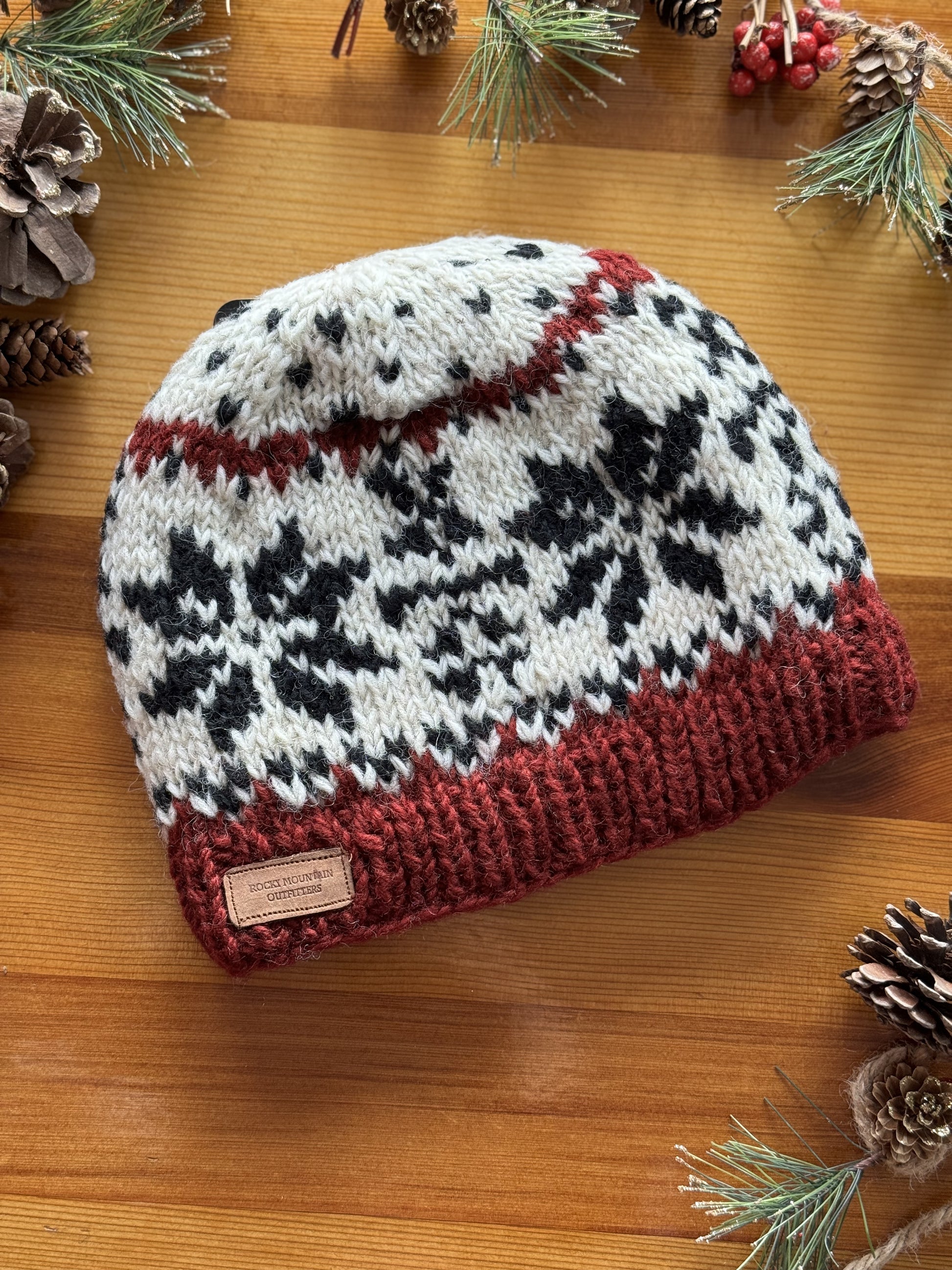 Experience winter magic with Rocky Mountain Outfitters' 100% New Zealand wool touque adorned with a charming snowflake print. Crafted for both style and warmth, this accessory brings a touch of alpine elegance to your cold-weather ensemble. The superstar lining ensures luxurious comfort, making it the perfect choice for your snowy adventures.