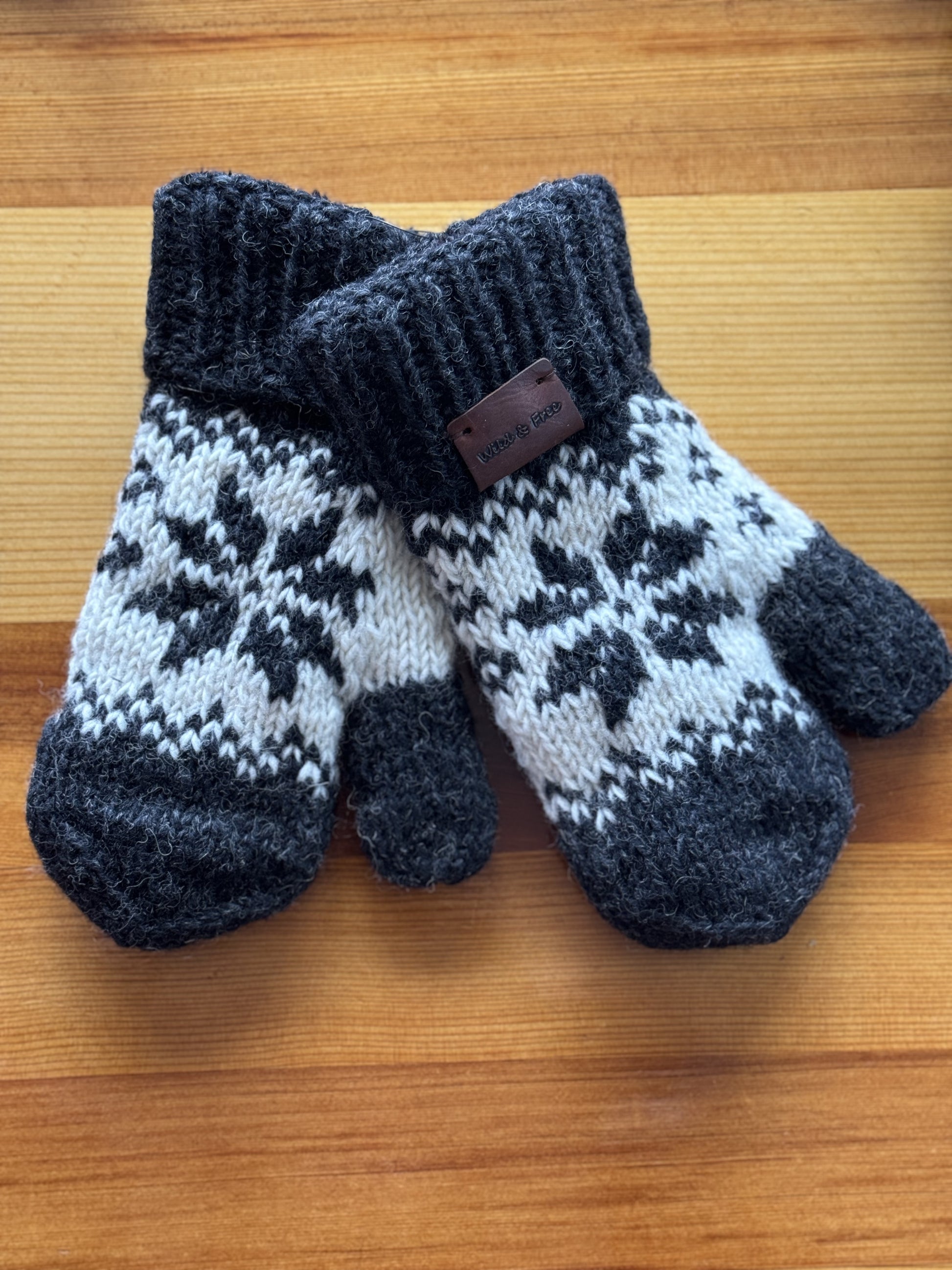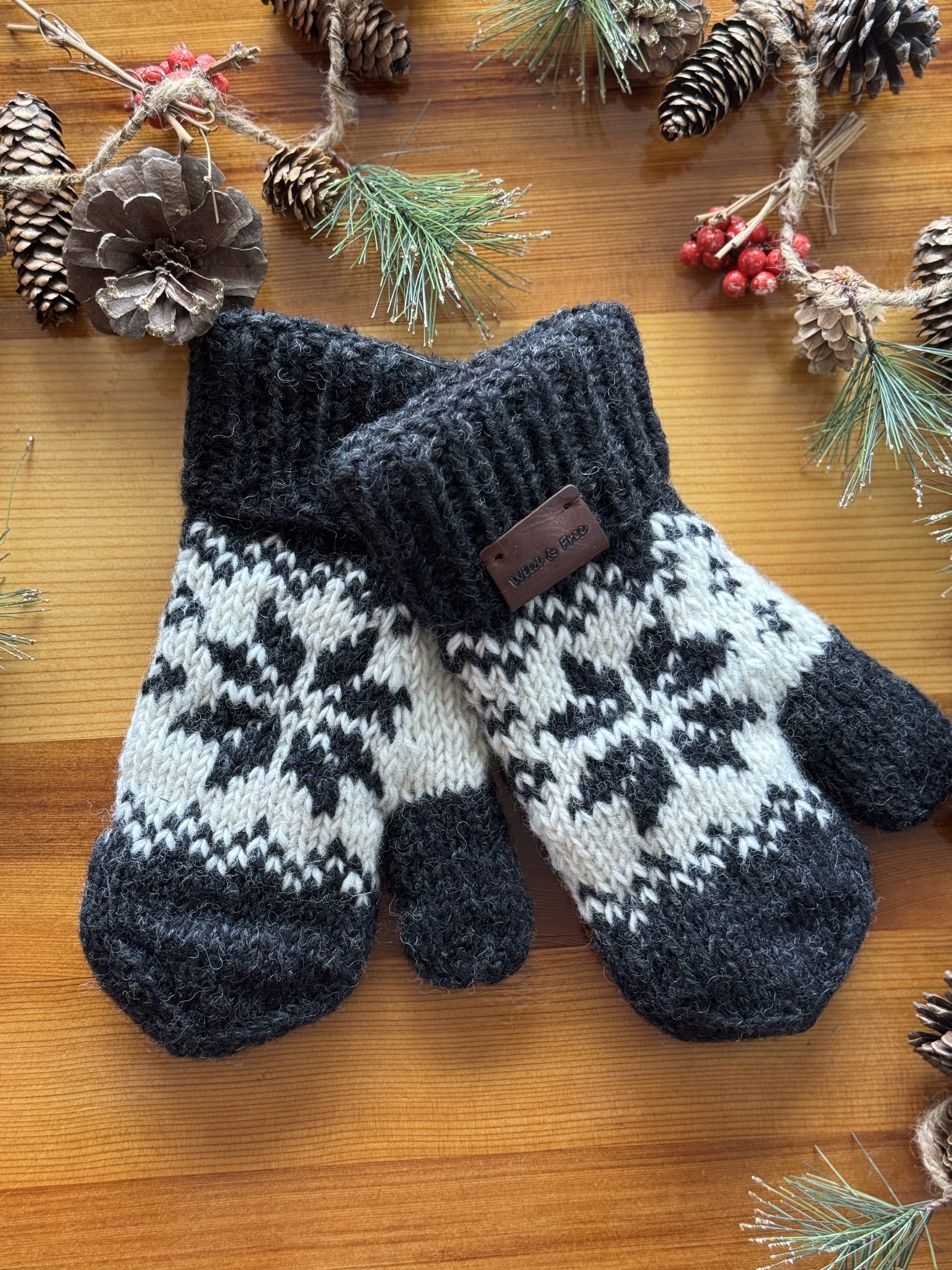 Embark on a journey of warmth and style with Wild & Free Brand's 100% New Zealand Wool Mittens. In a sophisticated charcoal gray adorned with a delicate snowflake design, these mittens bring an elegant touch to winter fashion. The super-soft lining ensures a luxurious feel against your skin, providing comfort and insulation on the coldest days. Embrace the season with the perfect blend of coziness and fashion from Wild & Free